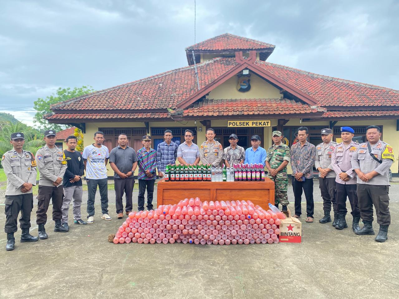 Dalam upaya menjaga stabilitas keamanan dan ketertiban masyarakat, Polsek Pekat melaksanakan kegiatan pemusnahan barang bukti minuman keras hasil razia/operasi peredaran miras di wilayah hukumnya. Kegiatan berlangsung pada Sabtu, 29 November 2025, sekitar pukul 09.00 Wita, bertempat di halaman Mapolsek Pekat.